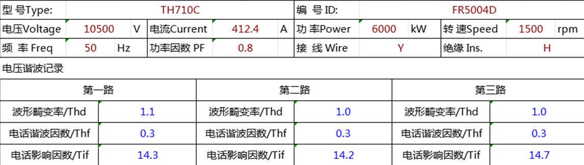 经严格测试,6MW高、低压同轴发电机波形畸变率(THD)实测稳定≤1.1%,远优于5%的国际标准,各项性能指标达到国际先进水平